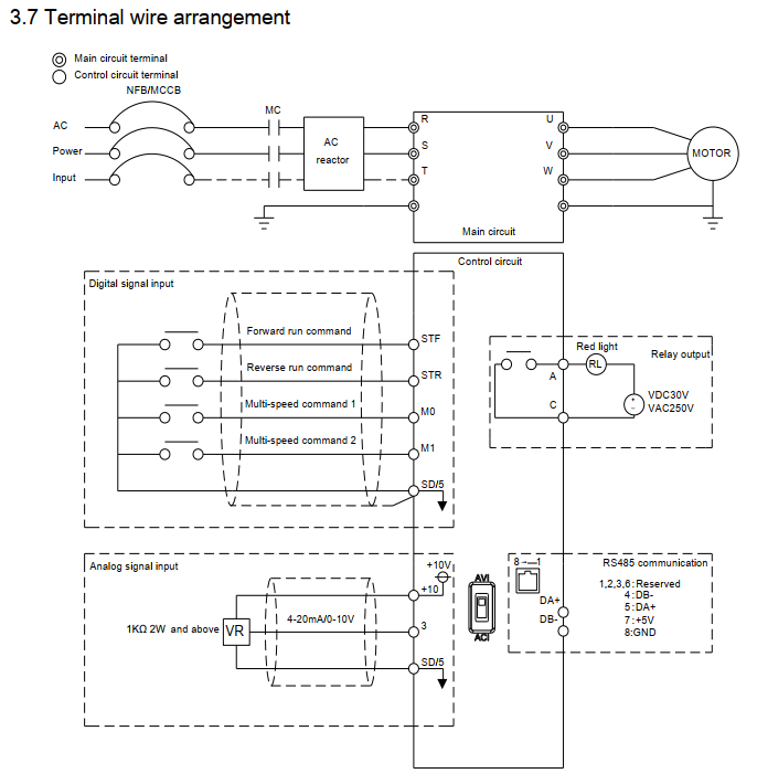 - Đầu vào nguồn điện ở phía trên và đầu ra động cơ ở phía dưới, giảm nguy cơ đấu dây sai.