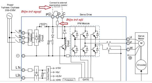 Sơ đồ trên là hình ảnh Điện trở xả ngoài và điện trở nội, cấu tạo nguyên lý chung của biến tần.
