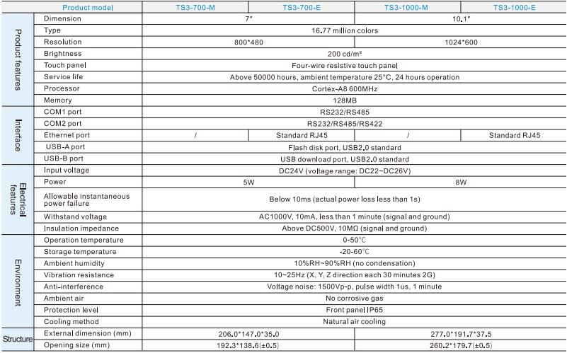 Thông số kỹ thuật của Màn hình HMI XinjeTS3-700-E: