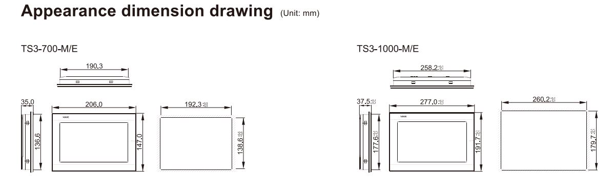Bản vẽ kích thước Màn hình HMI Xinje TS3: